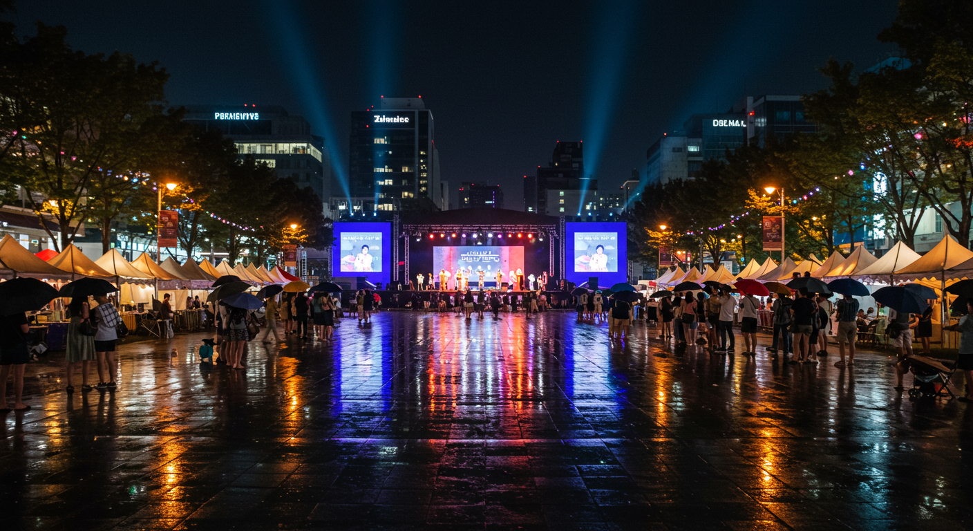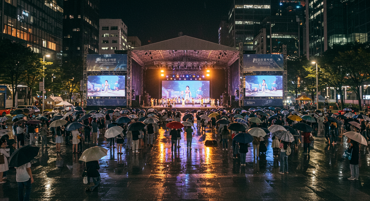 공연이 한창이었고, 관객들도 우산을 들고 끝까지 자리를 지키고 있더라고요.